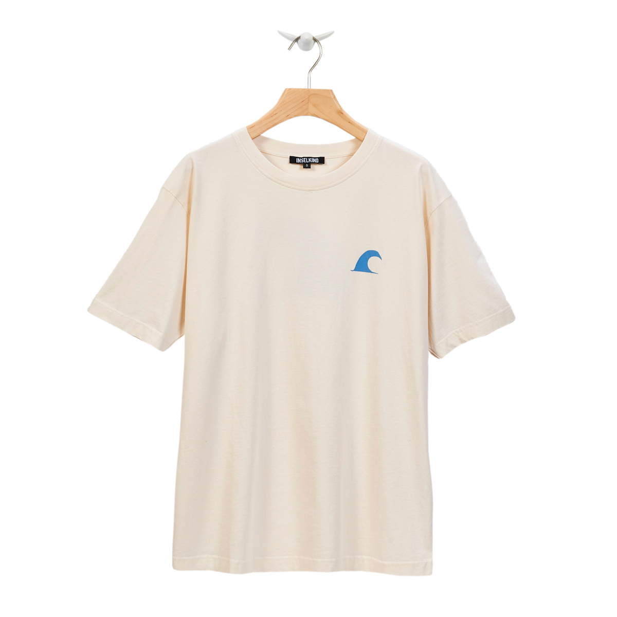 Lieblings T-Shirt für alle, die Wellen und das Meer lieben. Unser blauer Wellenprint sieht auf der natürlichen (ungefärbten) Baumwollfarbe einfach nach "Meer" aus. Er ziert die Vorderseite in klein und ist in großer Version ein echter Hingucker auf der Rückseite. Hinten über dem Saum befindet sich außerdem eine kleine typografische INSELKIND - Stickerei. Der besondere Look ist rein natürlich, ohne zusätzliche Färbung der Bio-Baumwolle.